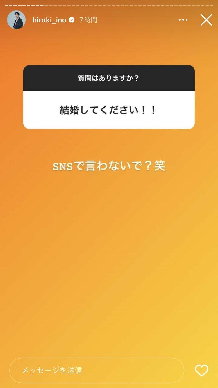 猪野くんのこの前のインスタの質問返しで「結婚してください」に対して「ここで言わないで?笑」ってやってたの