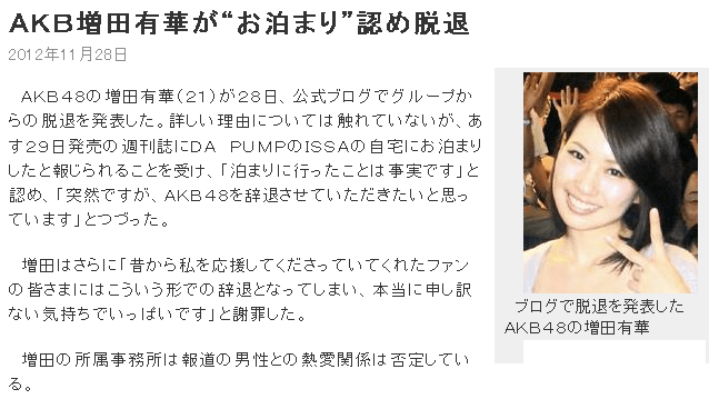 それで恋愛禁止じゃないとか事後報告されてもますますAKBへの不信感が積もるばかりだが、やめたいならさっさと廃業しろよ無能運営DH