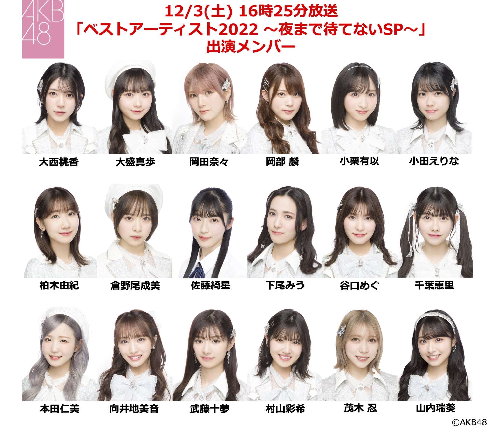 千葉恵里 本田仁美 小栗有以 柏木由紀 大盛真歩 山内瑞葵 下尾みう 倉野尾成美 佐藤綺星 浅井七海 橋本恵理子 徳永羚海 坂川陽香 水島美結 山崎そら 平田侑希