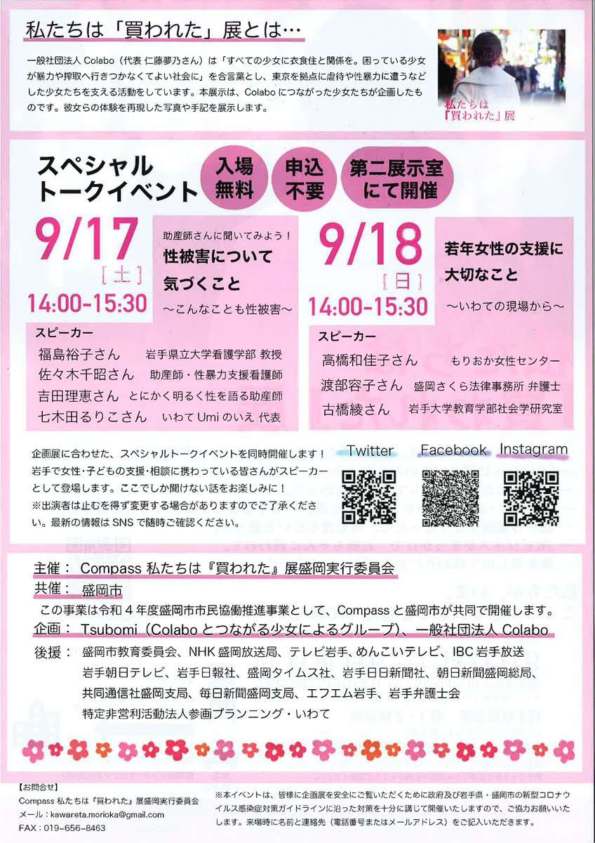 【闇深】仁藤夢乃Colabo企画「私たちは買われた展」のFAX番号、なぜか共産党盛岡市議の電話番号と一致