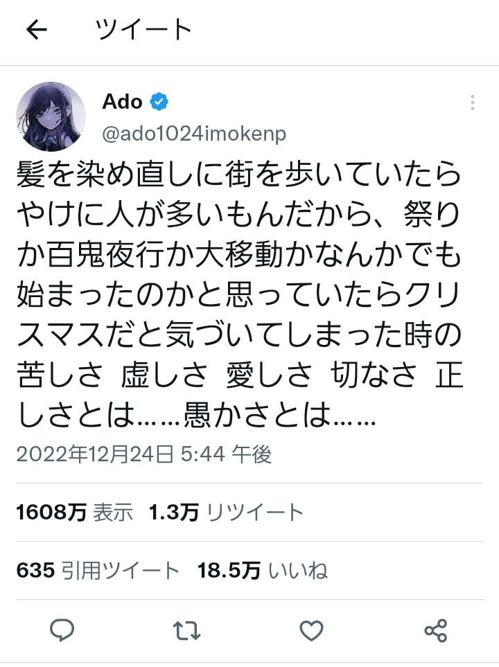 【画像】歌手のAdoさんがクリスマスに1人で出かけた結果wwwwww | ヤバイ!ニュース(・∀・)