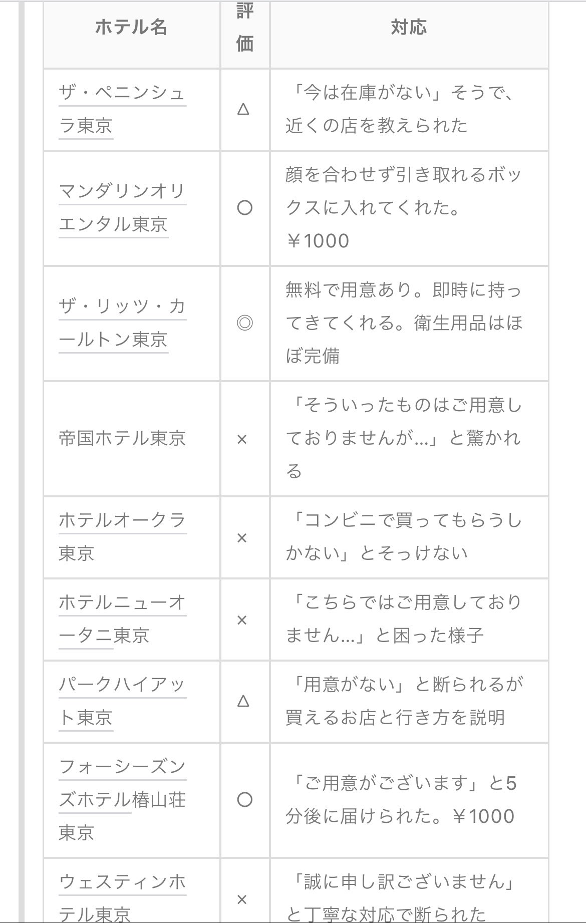 基本用意はないけどコンシェルジュがどこまで対応するかみたいな感じか