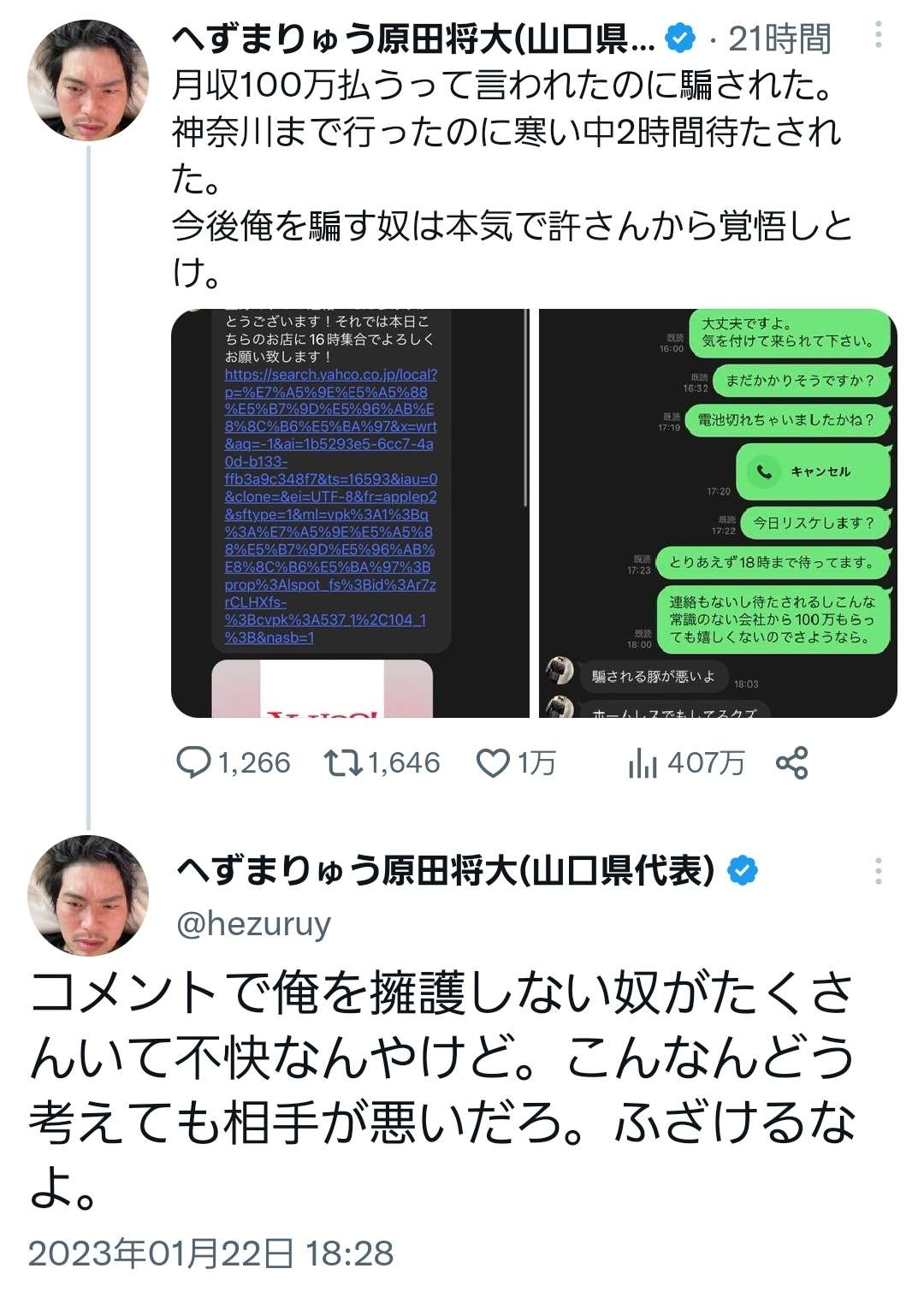 【写真】「騙される豚が悪いよ」と相手から暴言…へずまりゅうが公開したLINEやり取りのスクリーンショット