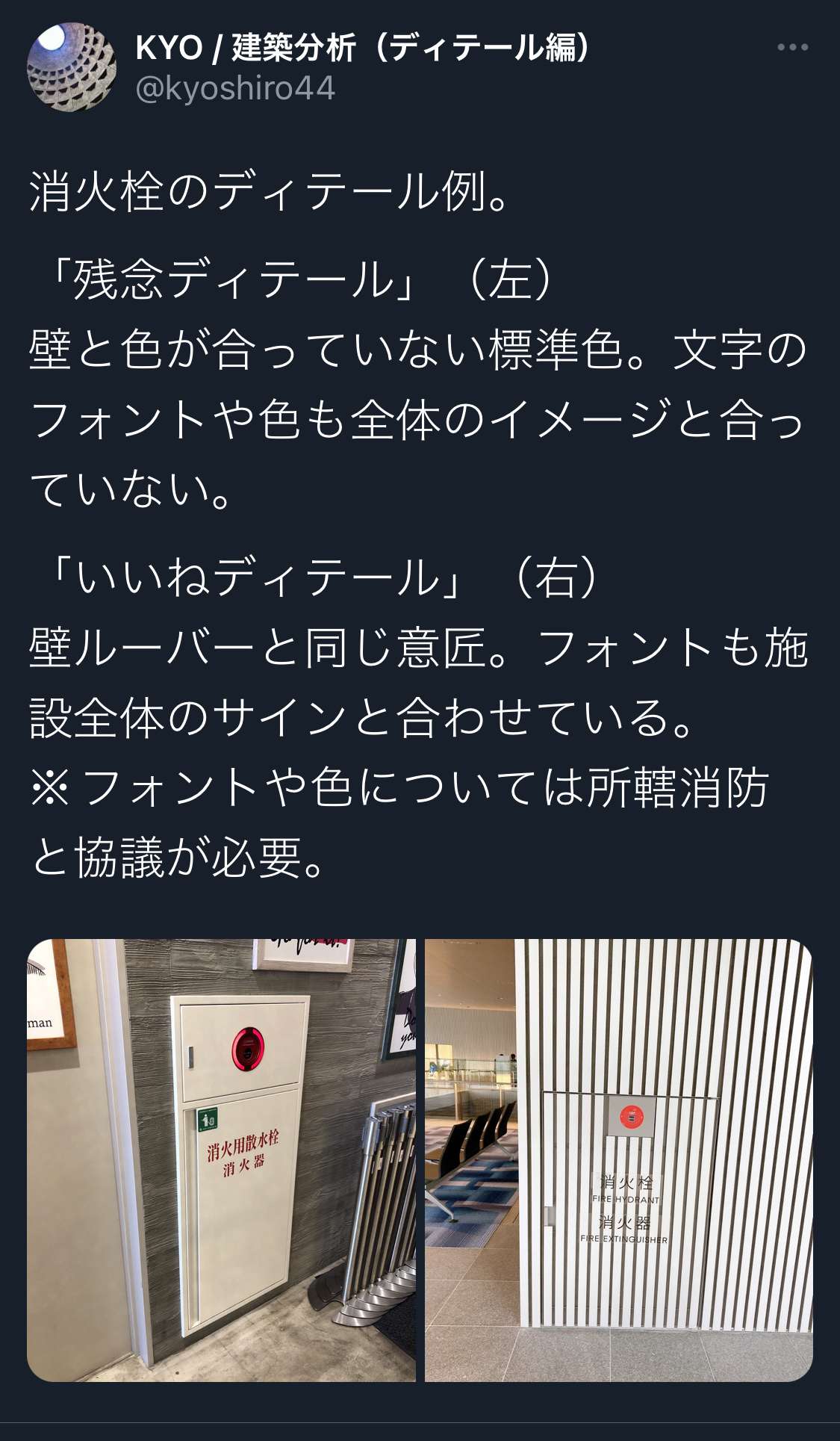 たぶん自分が施工した案件をいいねディテールとかほざいてんだろ絶対消防と協議なんてしてねーし