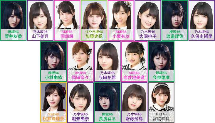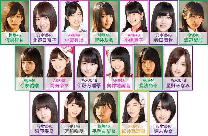 乃木坂:生田絵梨花、桜井玲香、白石麻衣、西野七瀬、深川麻衣、松村沙友理