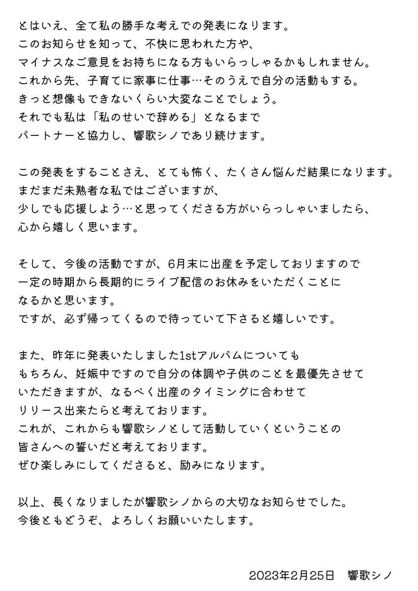 響歌シノ 2/25お知らせ! @Kyoka_Shino (2023/02/25 21:12:00)