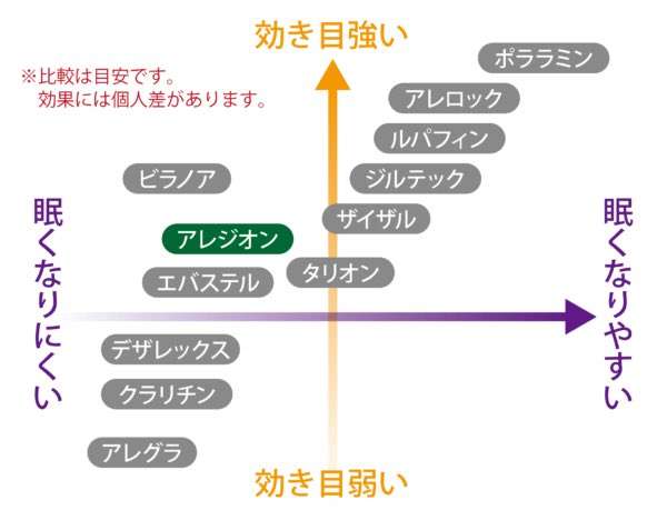 ついったで拾ってきたけど、なるほどアレグラは弱いのかぁ。市販で強めなのはアレジオンになるのかな…。