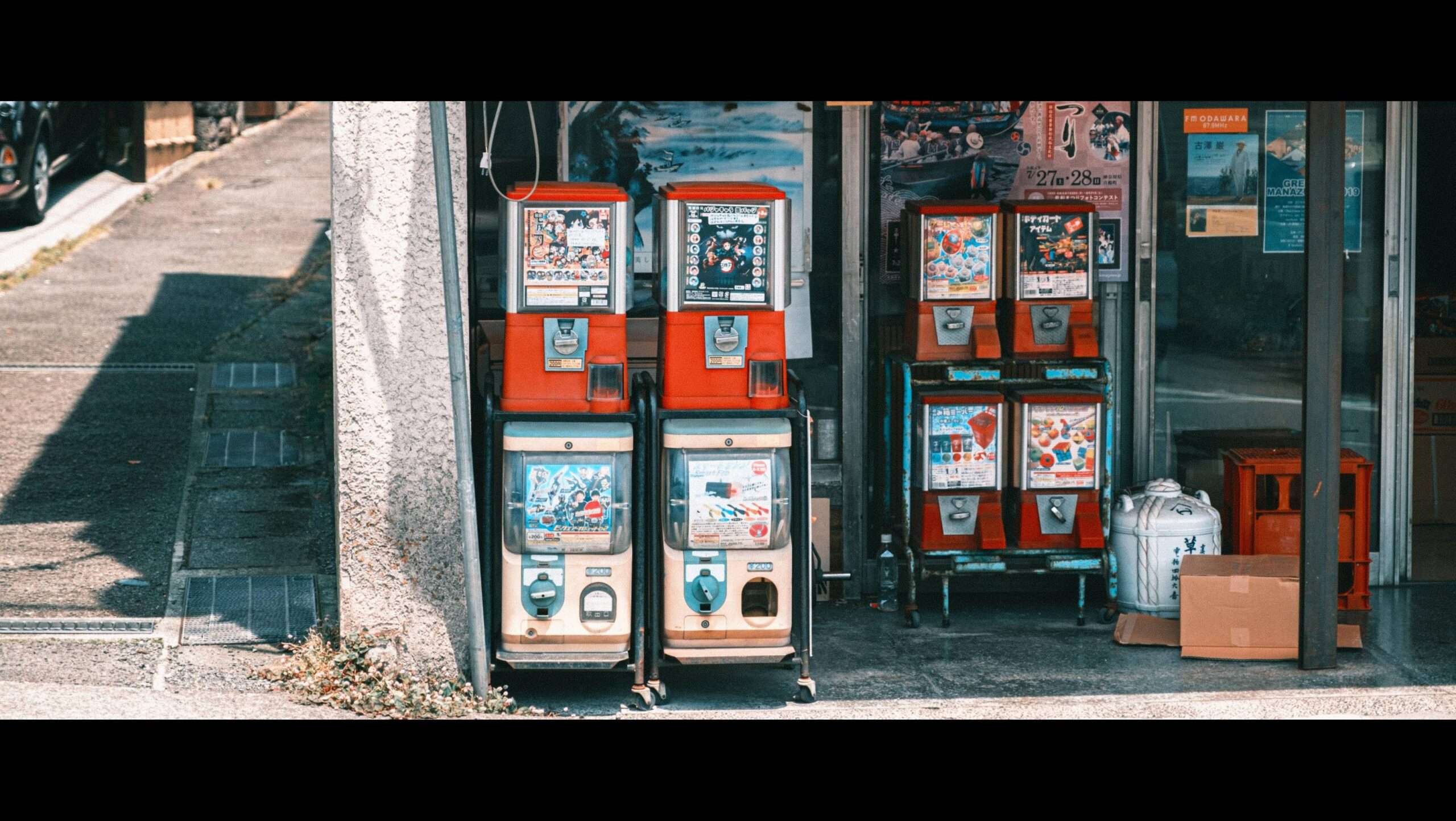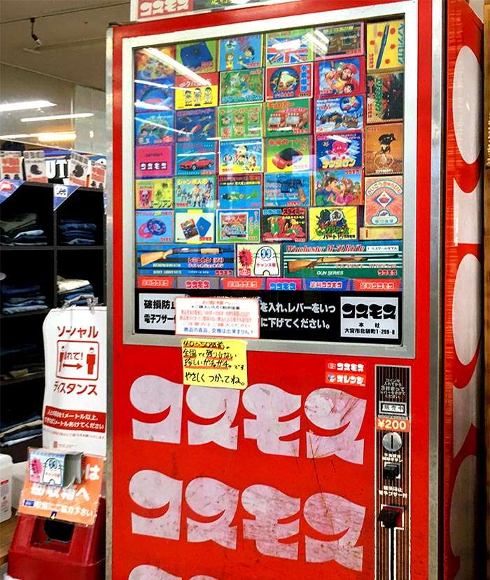 プールの帰り、バス停から家までの歩き道でこんな駄菓子屋の前を通って、ガチャガチャしたい!ってワガママを言うんや