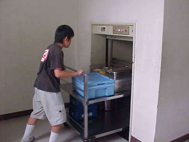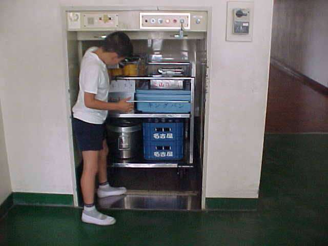 小学校の給食のワゴンを一階から送ってくる小さいエレベーター