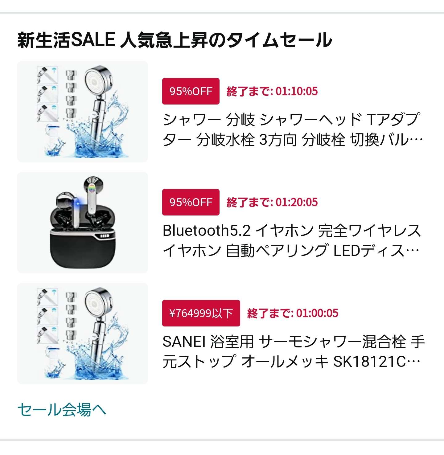 中華の1000円シャワーヘッドを6万円で出品、新生活セールに合わせて3000円に値下げすることで95%OFFと表示
