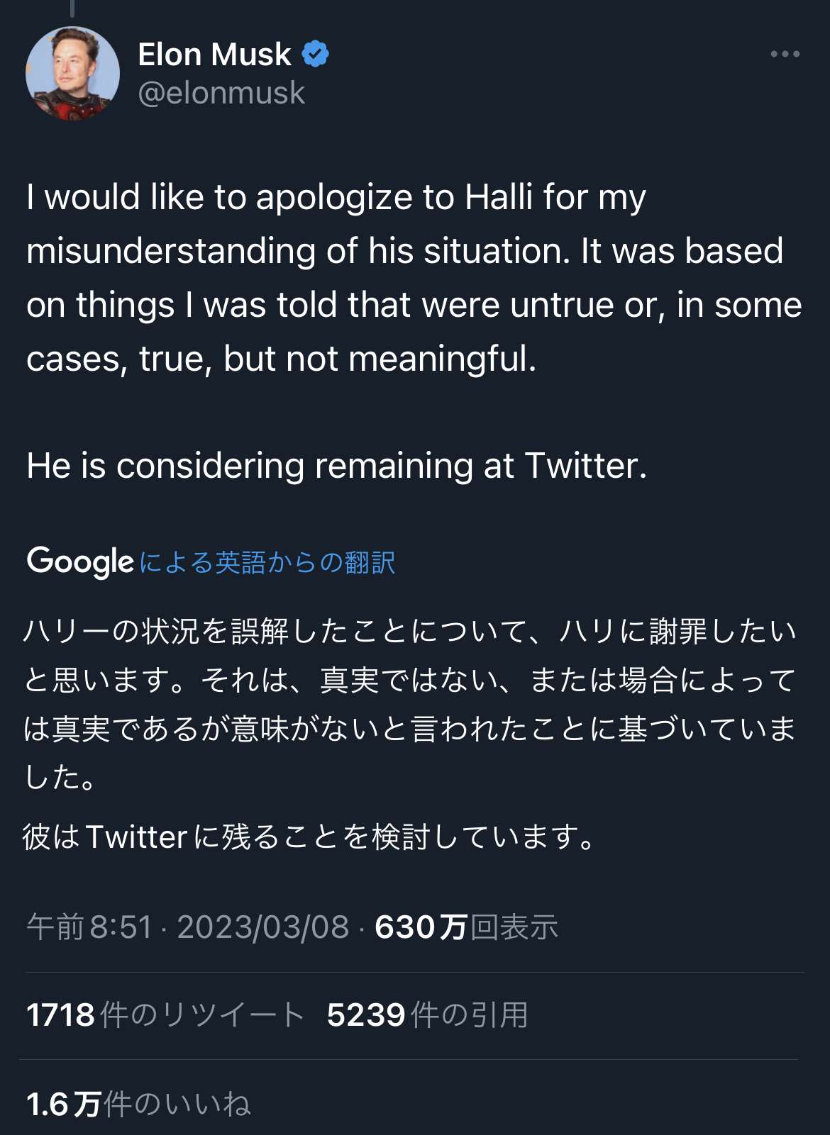 ハリ・トルライフソンさんは自身のデザイン会社ウエノが2021年にツイッターに買収され、同社でシニアディレクターとして働いていたが、職場のコンピューターへのアクセス権限がなくなっており、まだツイッターに在籍しているのかどうかについての回答を人事部から得ることができないとマスク氏に宛てたツイートを6日に投稿した。