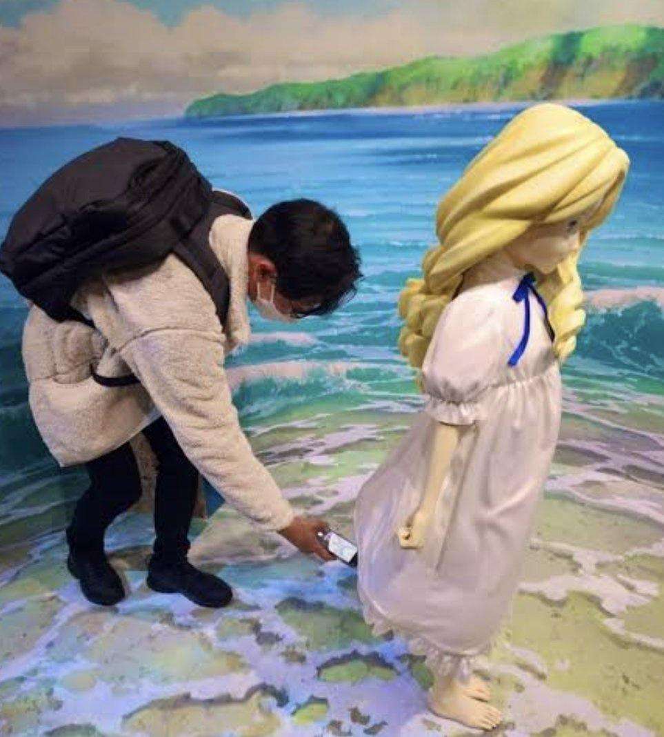 ジブリパークの撮影スポットでチー牛が盗撮風写真や胸を揉む不適切行為を投稿する