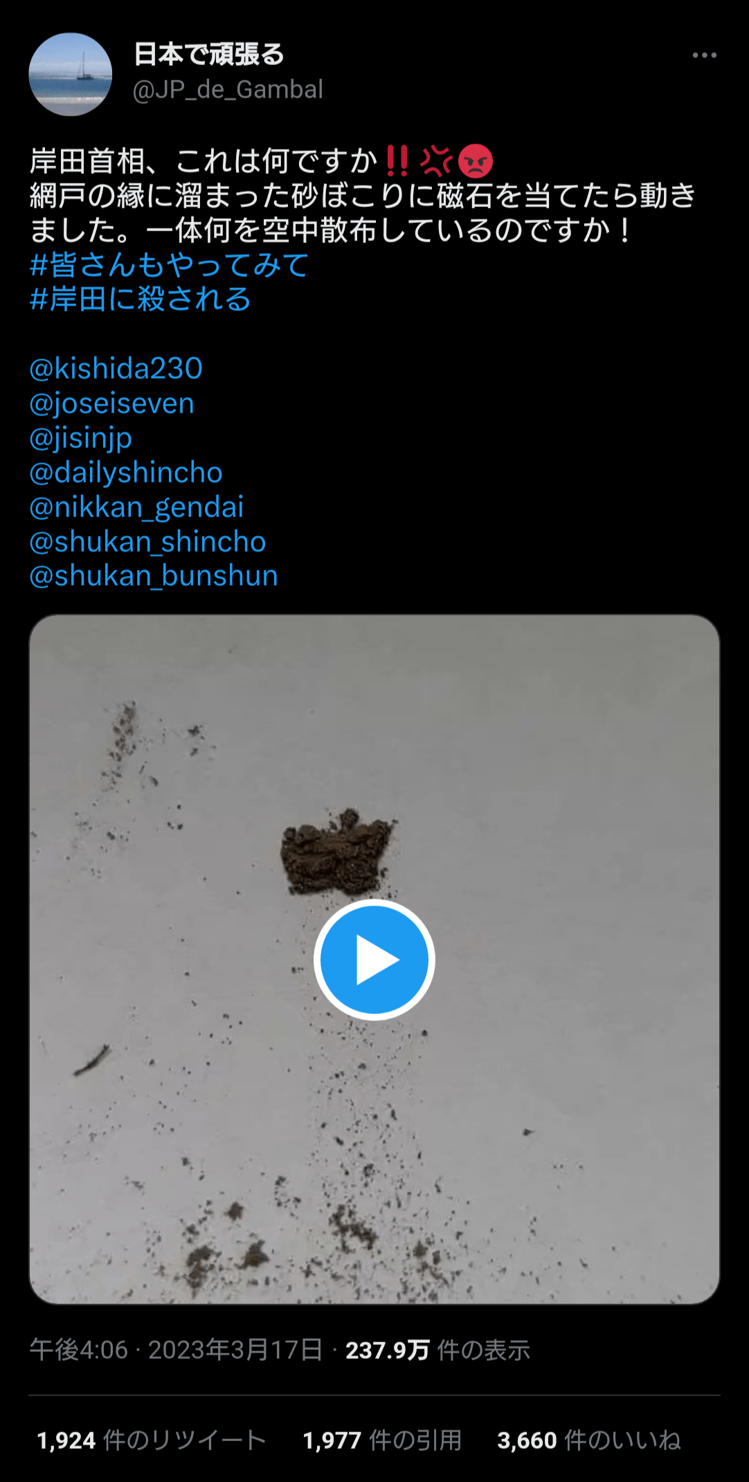 【悲報】岸田首相、磁石を当てたら動く謎の砂を散布してしまう | ヤバイ!ニュース(・∀・)