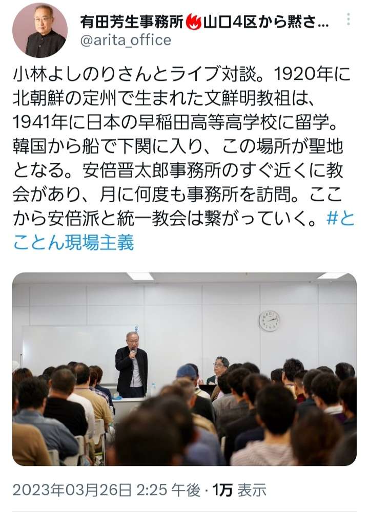 「3月5日に岸田総理が吉田さんの集会に来た時は、総理が会場を出ると同時に、最前列に座る林派の下関市議たちが一斉に立ち上がって退席した。