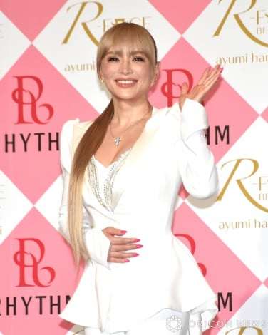嵐のようなフラッシュを浴びた浜崎は「こんなに多くの方にお集まりいただいて…」と注目度の高さに驚きながら「きょうは、久しぶりに白いスーツを着ました」と笑顔を振りまいた。