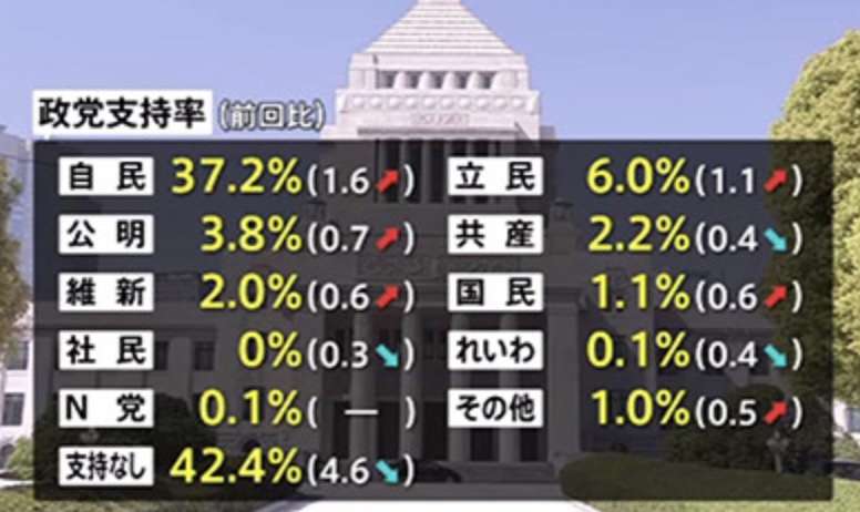 岸田内閣を「支持する」と答えた人は45.3%で、先月より10.2ポイント上昇し「支持しない」は34.6%でした。