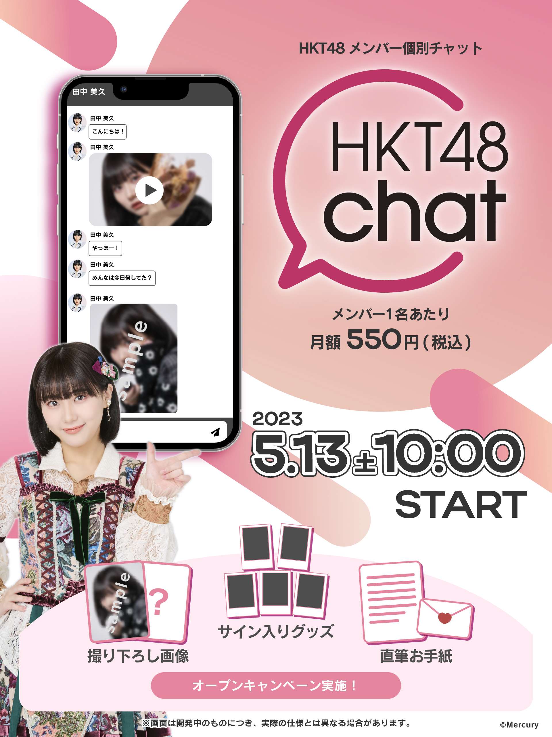 2023年5月13日(土)10:00より、HKT48 オフィシャルメンバーシップ「HKT48 Family」とHKT48メンバー個別チャットサービス「HKT48 chat」を開始いたします。