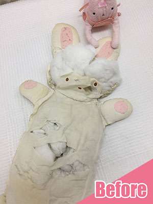 形をとどめていないぬいぐるみの手を握ってるのが切ない