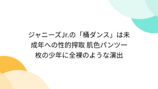 ジャニーズJr.の「桶ダンス」は未成年への性的搾取 肌色パンツ一枚の少年に全裸のような演出「どう考えても男性に対するセクハラであり性的搾取でしょ。女性アイドルに対する配慮は出来てきても依然として男性アイドルはコ...