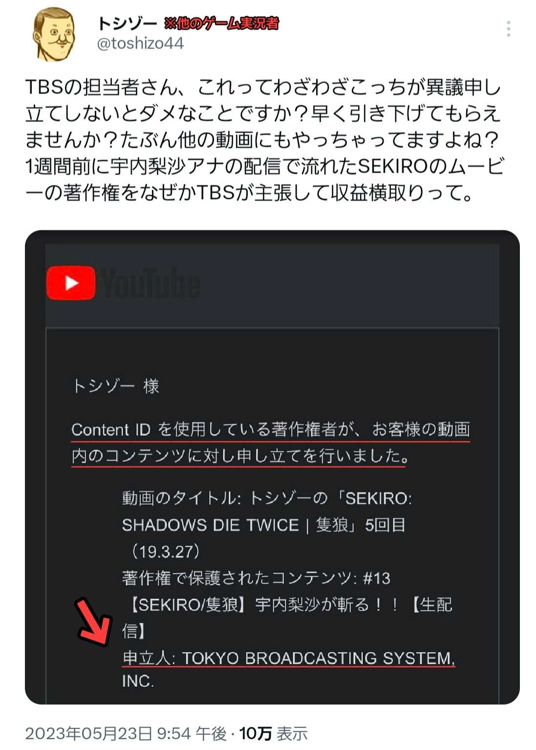 天下のTBS様がお前ら人様の映像パクって収益得てんじゃねーよと著作権違反で通報しまくり収益をかすめ取る自体に