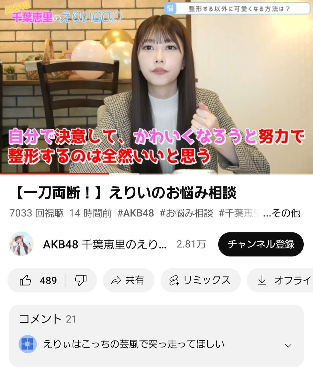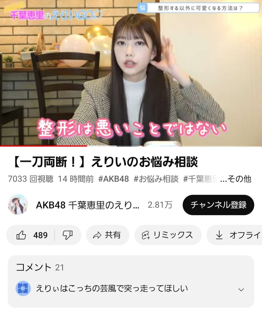 整形なしでビジュトップの千葉だから言える事だろ