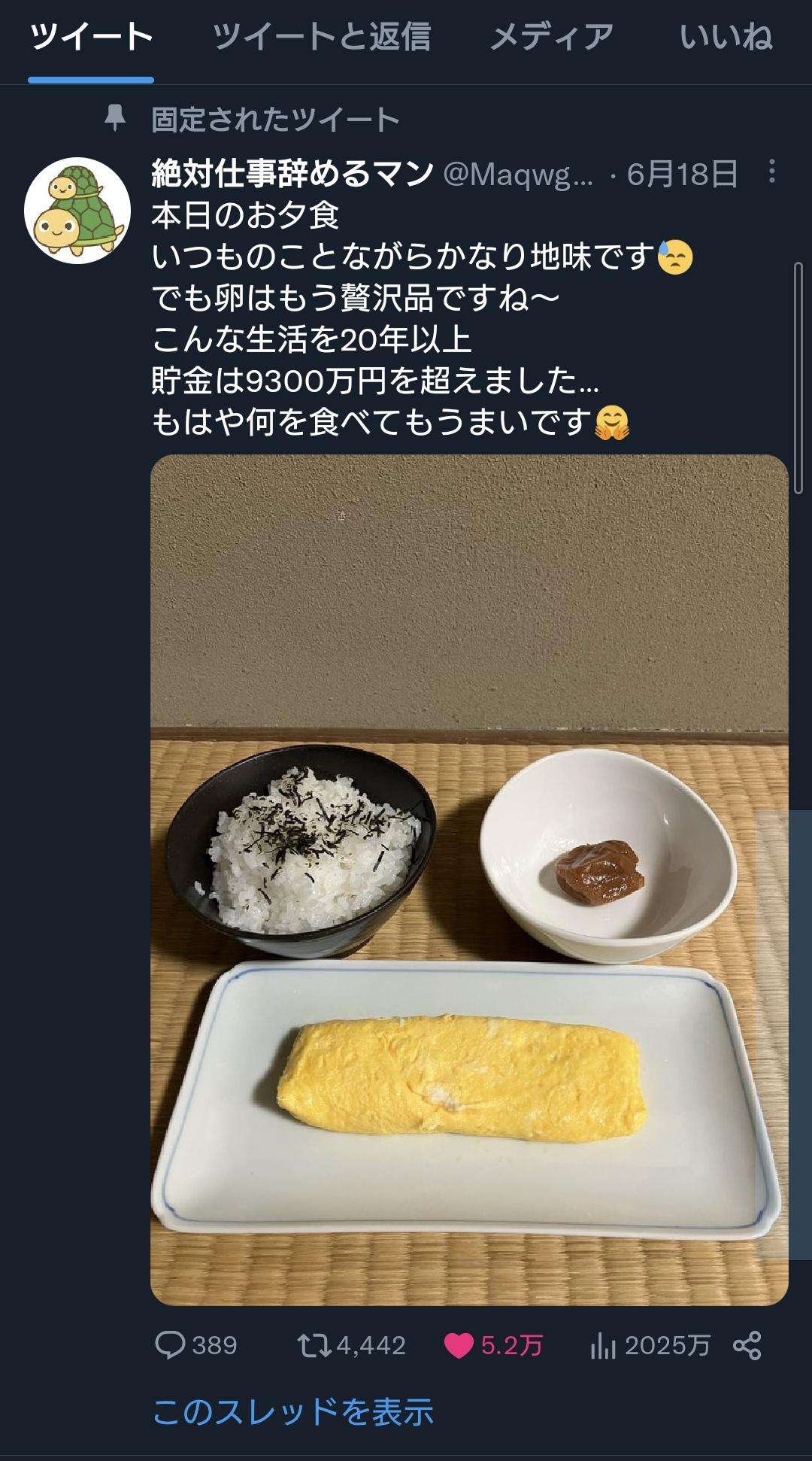 投資に回してればこんな食事しなくても同じ額貯まっとるやろ