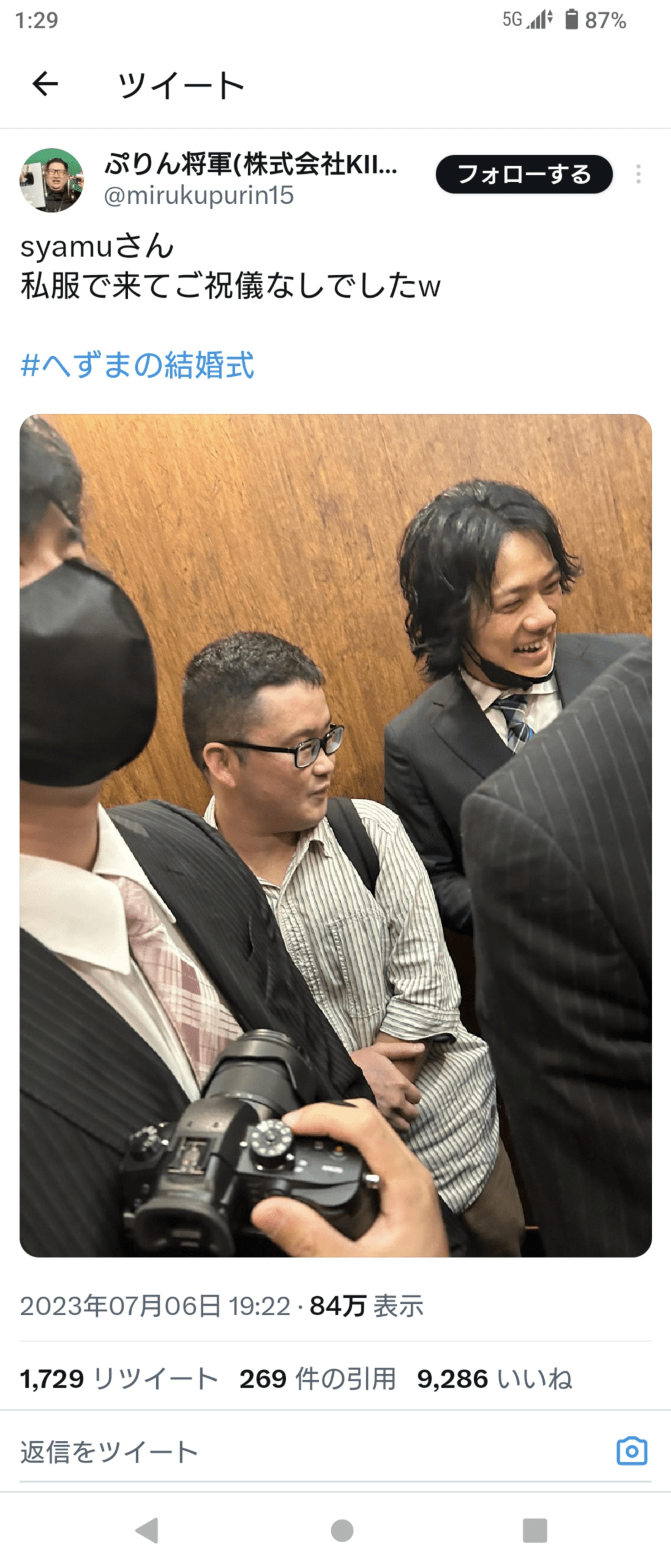 へずまりゅうは「結婚式の祝儀って面白い」と書きだし、披露宴に参加したユーチューバー・syamu(38)、ゆたぼん(14)、インフルエンサー・混沌さん(23)3人の祝儀額を公開。