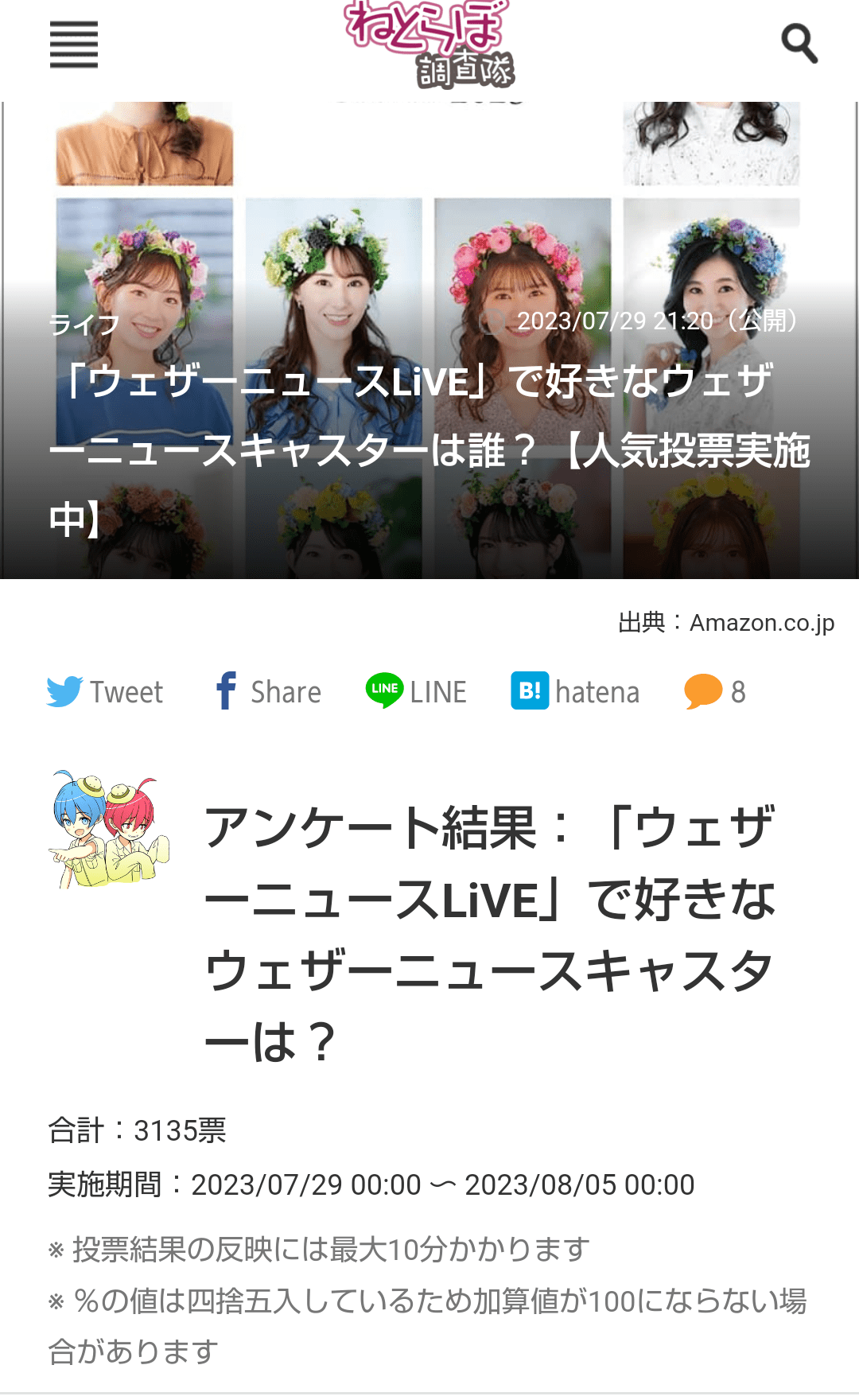 【悲報】檜山沙耶、ウェザーニュースキャスター人気投票で5位まで落ちる | ヤバイ!ニュース(・∀・)