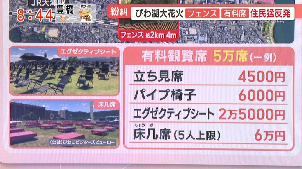 この琵琶湖の花火カップル席で22000円だって一番高い席で60000円とかするみたいだから買うの躊躇ったんだろうね