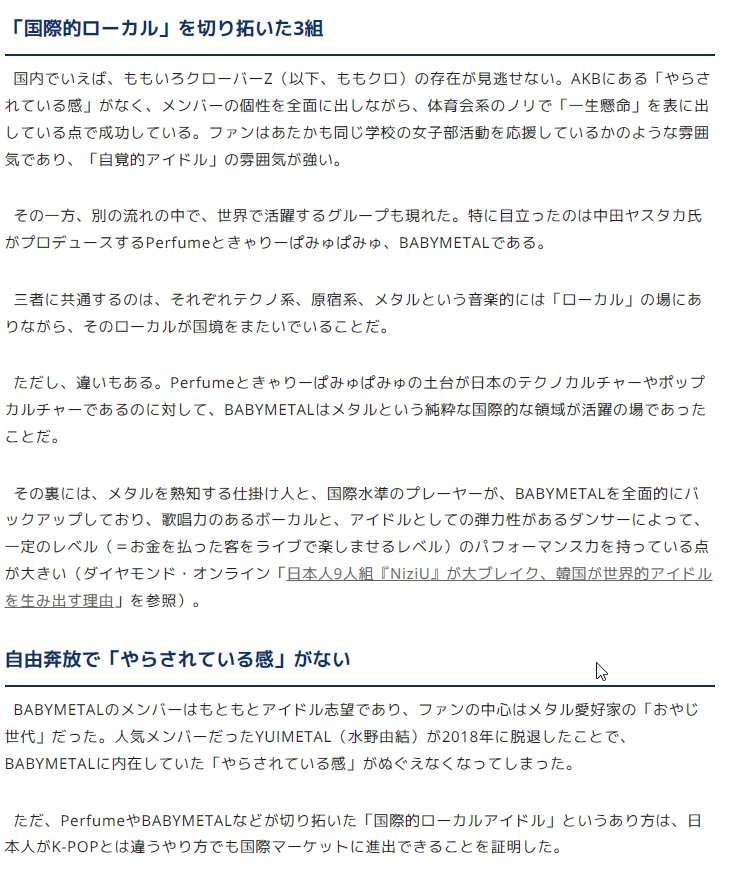 普通のアイドルとは違う楽曲性や振り付けが世界にウケたんやろな