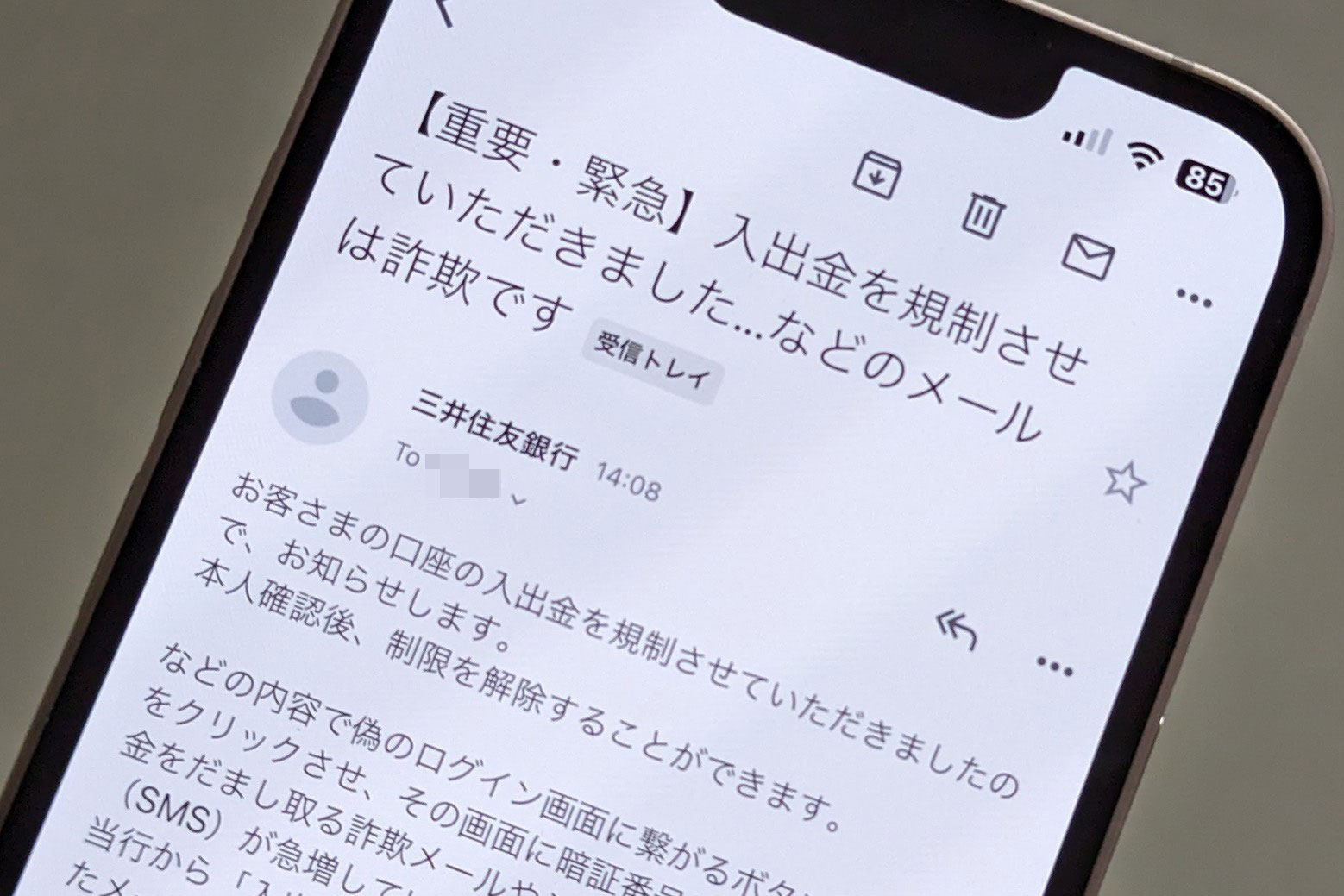 「入出金を規制させていただきました」、詐欺メールかと思ったら実は三井住友銀行のお知らせだった