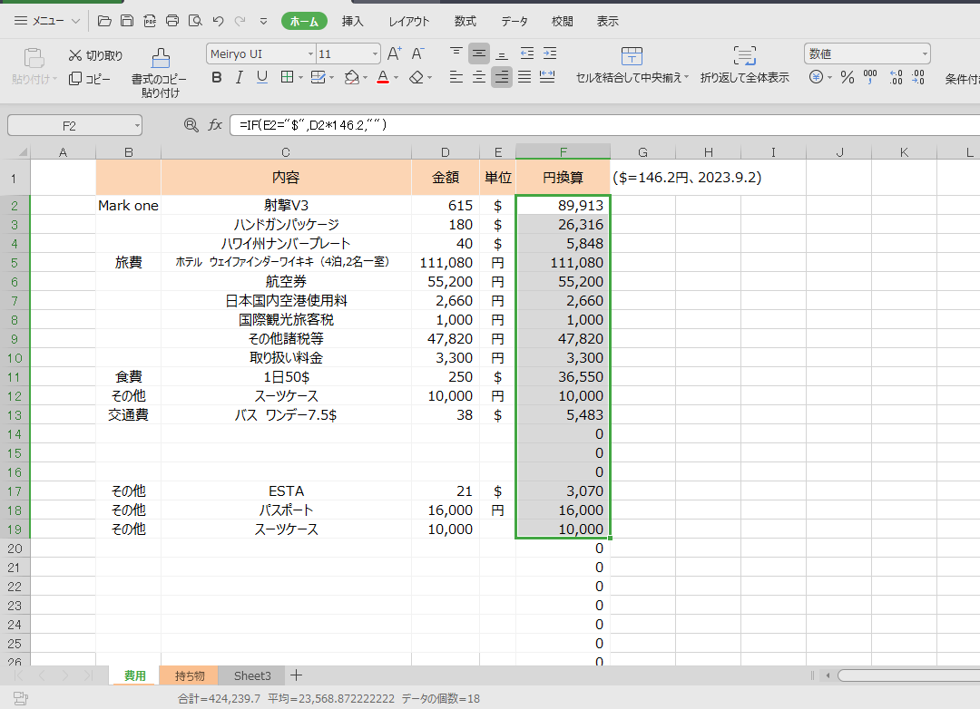 スーツケース二回計上してるよ