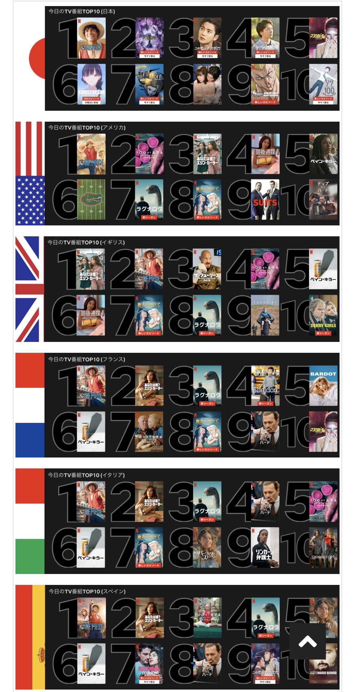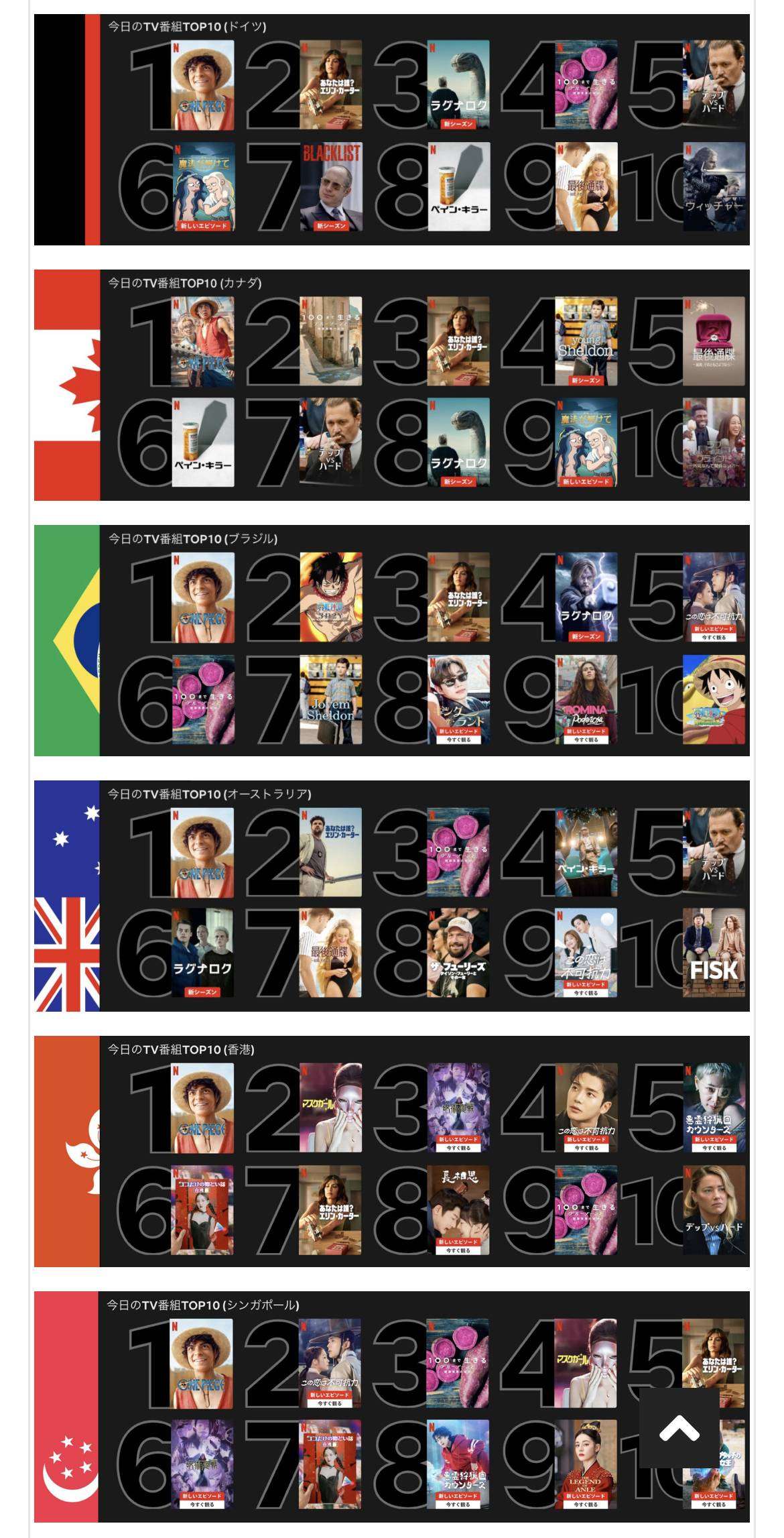 他の国は1位か2位のエリンカーターが入らずにアニメアニメ&アニメ