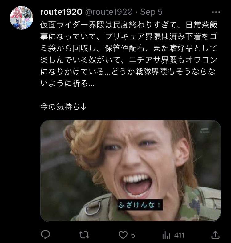 【悲報】ニチアサ界隈さん、「この界隈終わってる」とお気持ち表明
