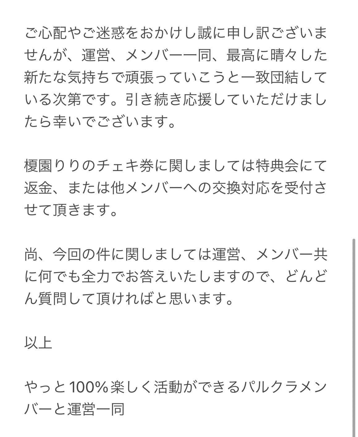 「人間性が著しく欠如している行動が散見された為、運営とメンバー全会一致で『2度と顔も見たくない』という結論に至りました」と強く非難した上で、