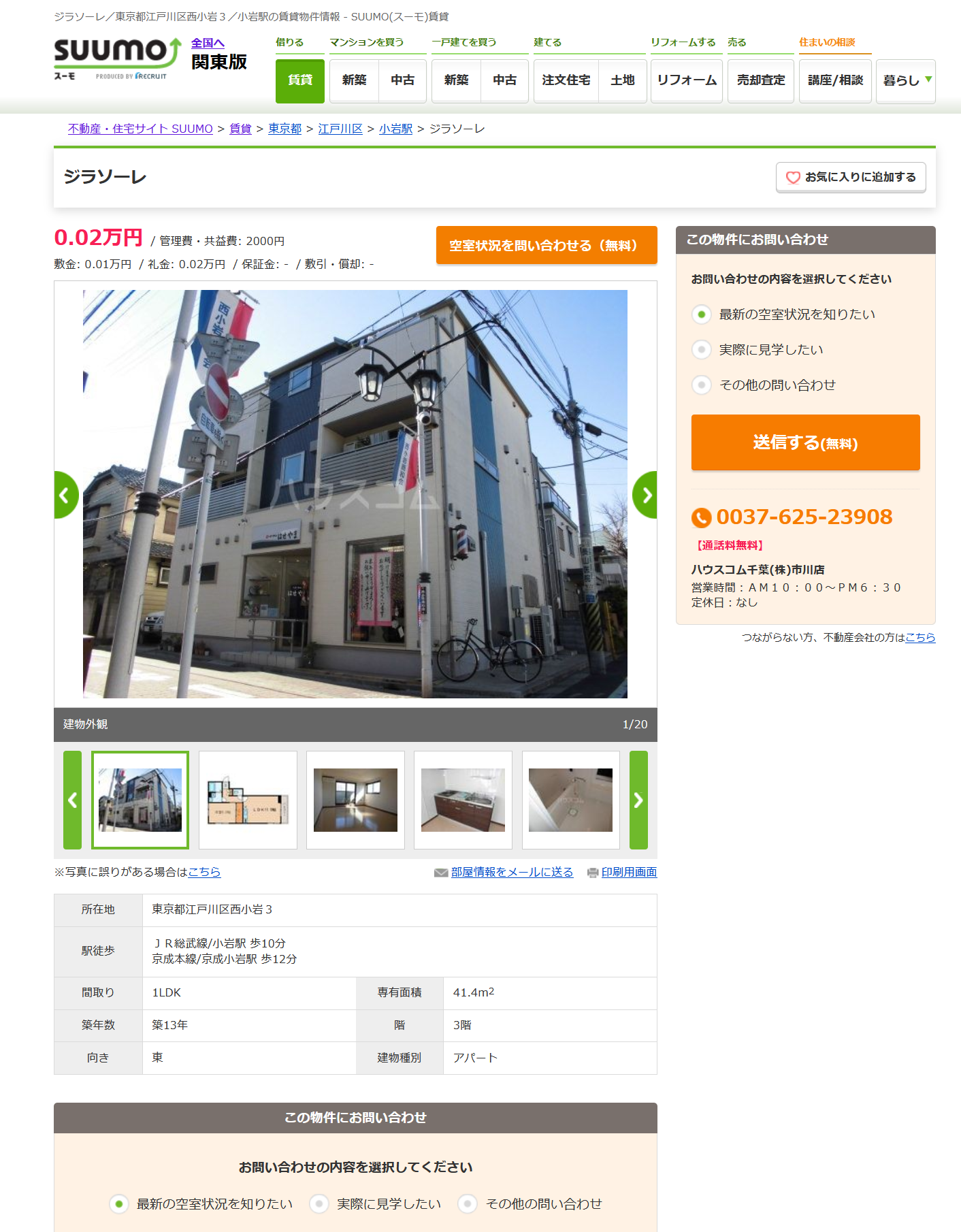 スーモよく桁間違えて12万が1.2万とかあるねん
