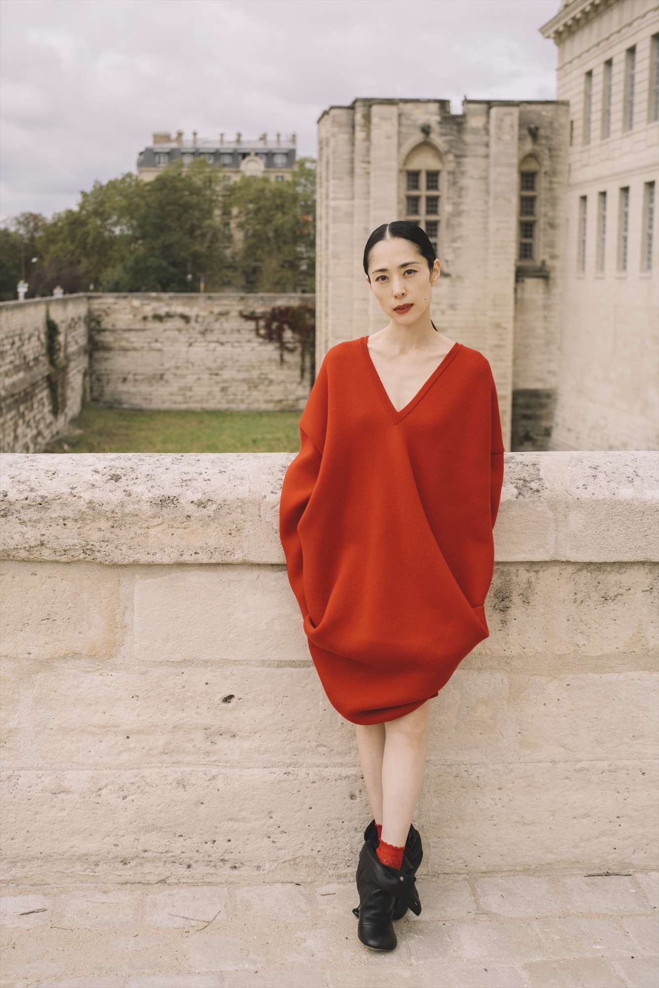 俳優の深津絵里(50)が、フランス・パリ東部にある広大なヴァンセンヌ城で行われたロエベ 2024春夏ウィメンズ ランウェイショーに来場。