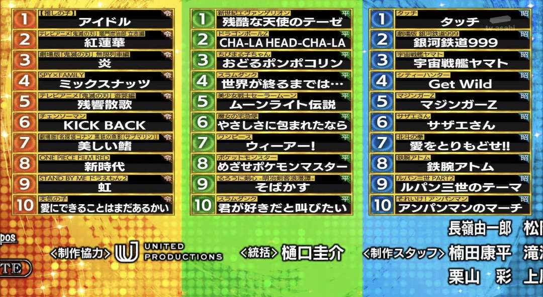 一番左欄のアニメ見たことないのしかないからまったくわからん