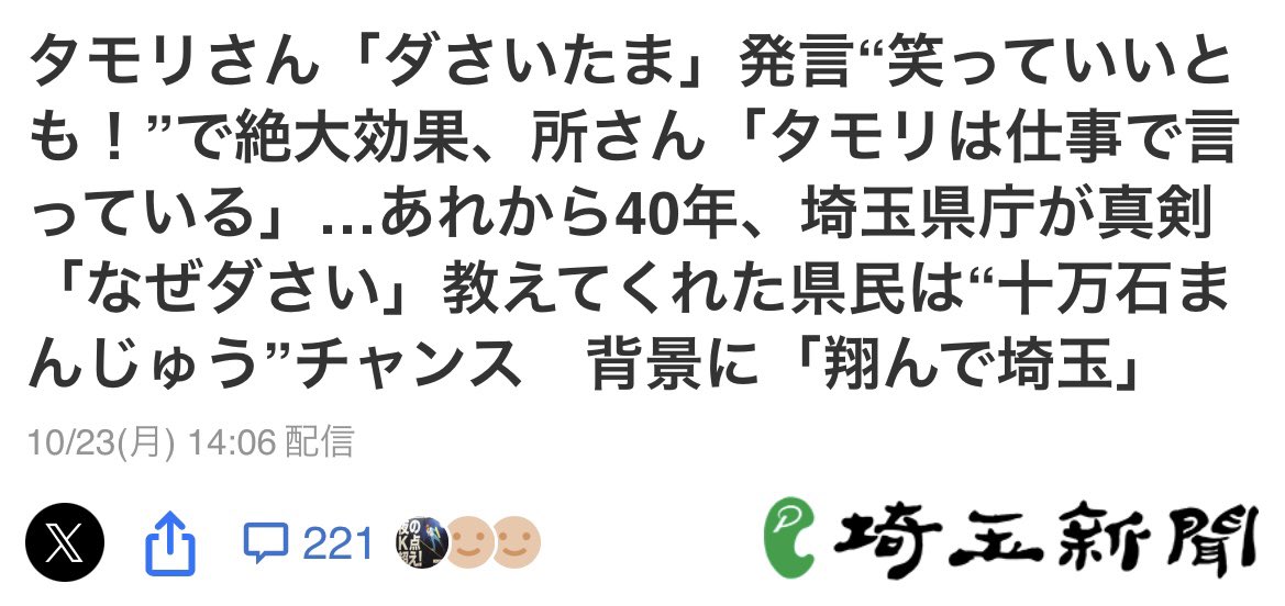 ダサイたま、まんじゅうチャンス 背景に翔んで埼玉