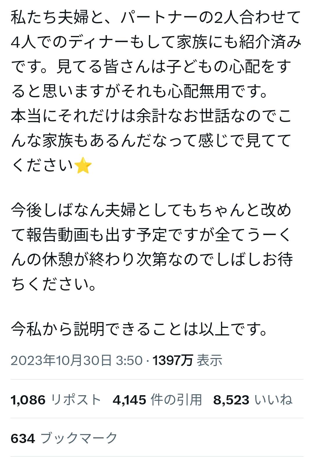 離婚もしてないのに不貞行為を堂々と認めるとはたまげたなあ