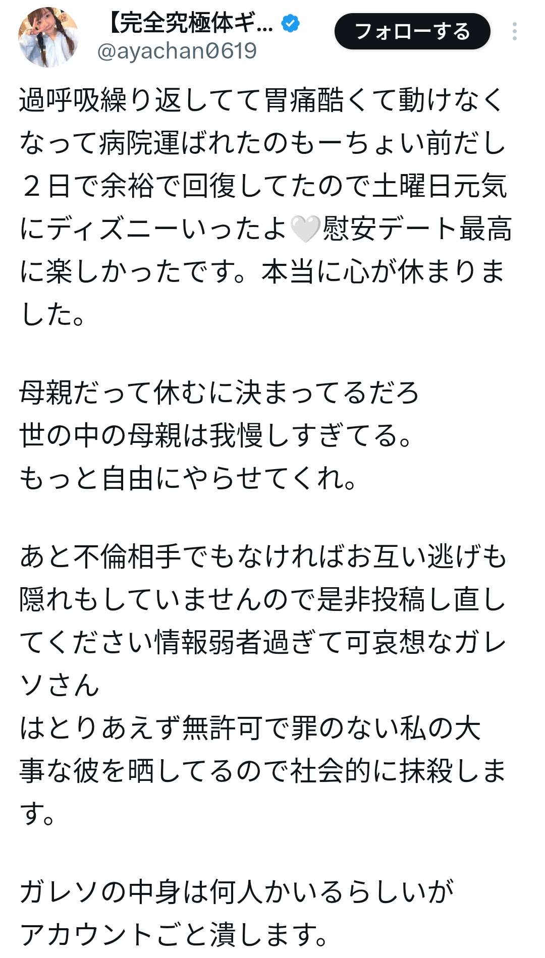 あ「不倫されたぁ!そのせいで病みもしたぁ!」