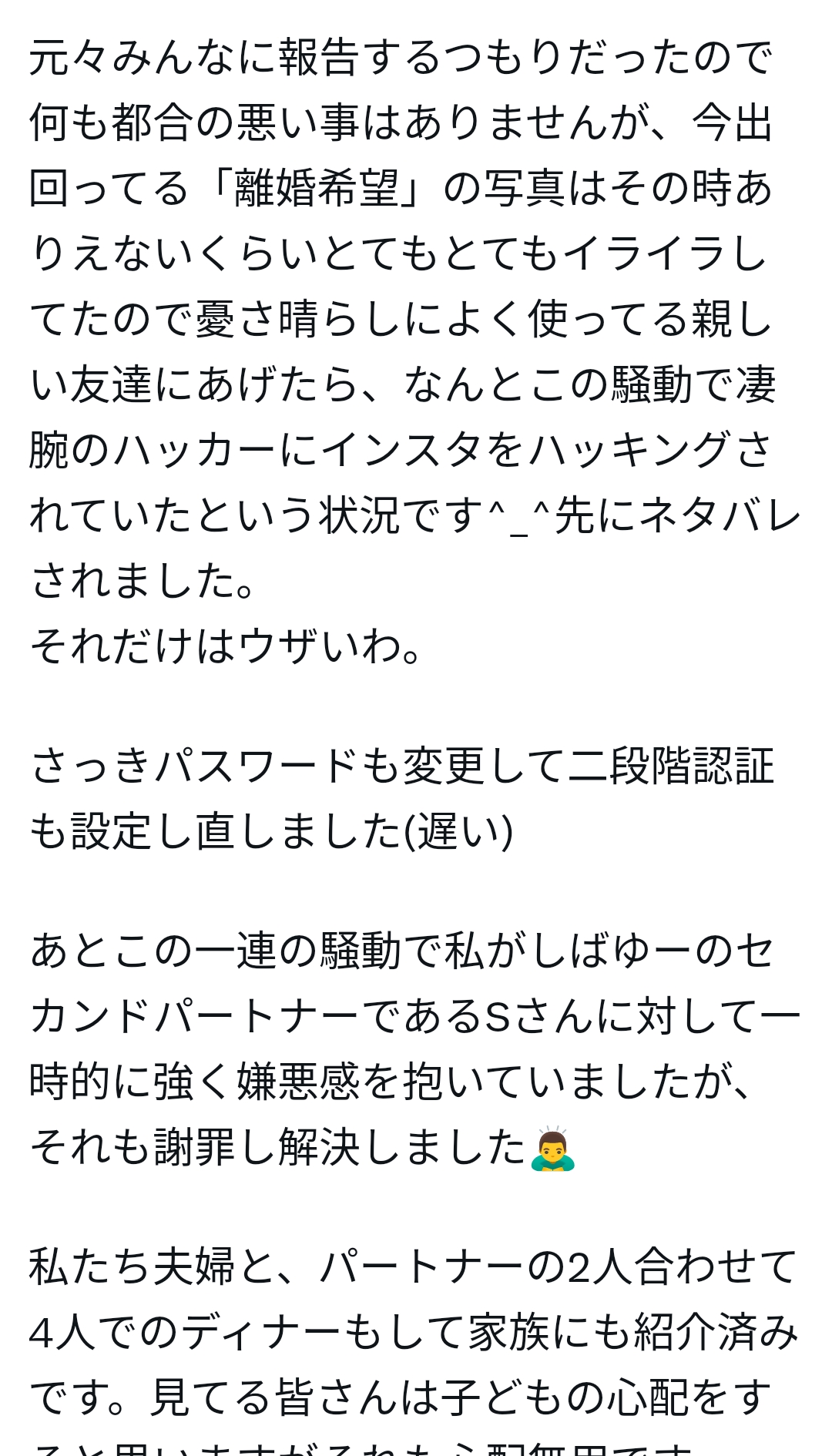 お互いセカンドパートナーいて4人で飯食ったなら問題なさそうだな