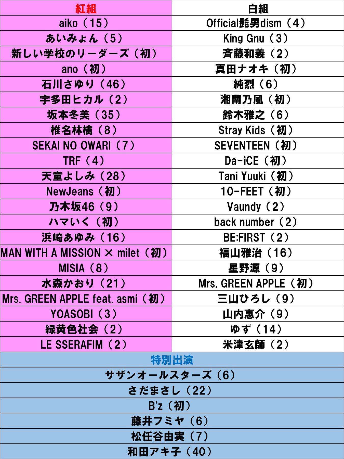 【画像】2023紅白出場者の有力予想、出たよー!!!!!!!