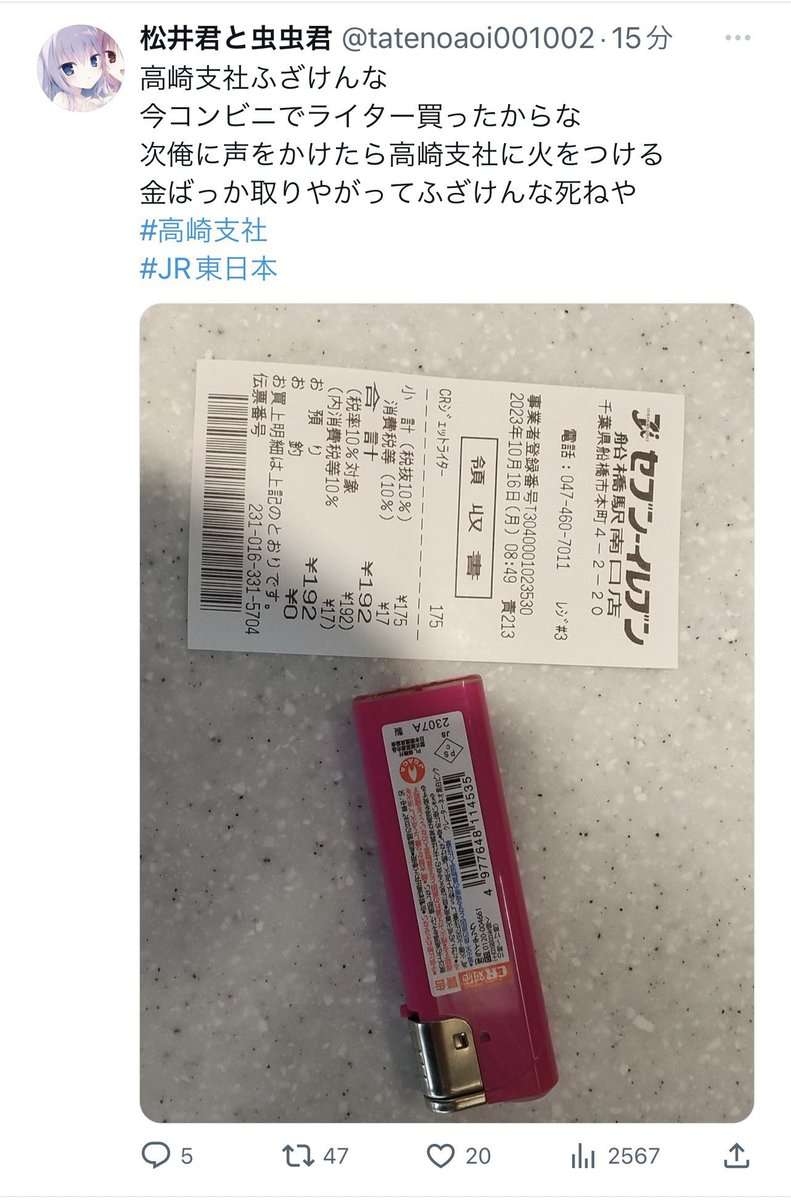 群馬県警は、JR東日本高崎支社に対し火をつけるなどとSNSに投稿し、業務を妨害したとして19歳の少年を逮捕しました。