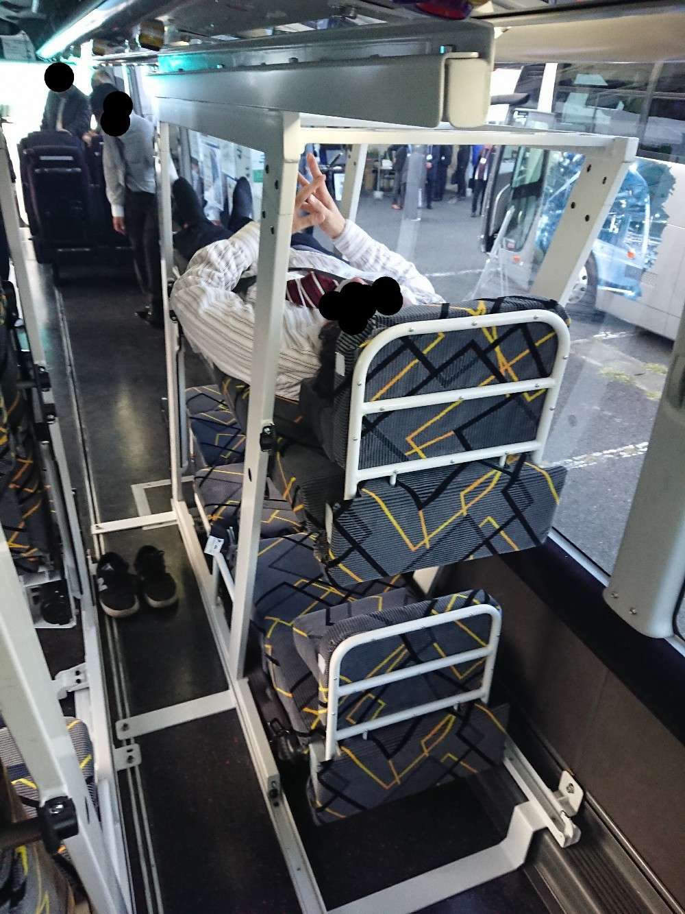 バスで横になるのって道交法かなんかでダメなんじゃなかったっけ