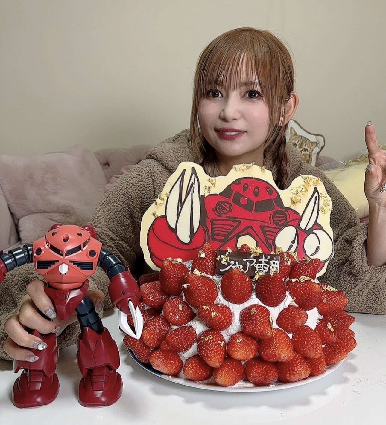 同投稿に対し「シャアズゴケーキすげぇ しょこたんさんはステキや」「プレートがデカいのか、しょこたんが小顔なのか」などと書き込まれていた。