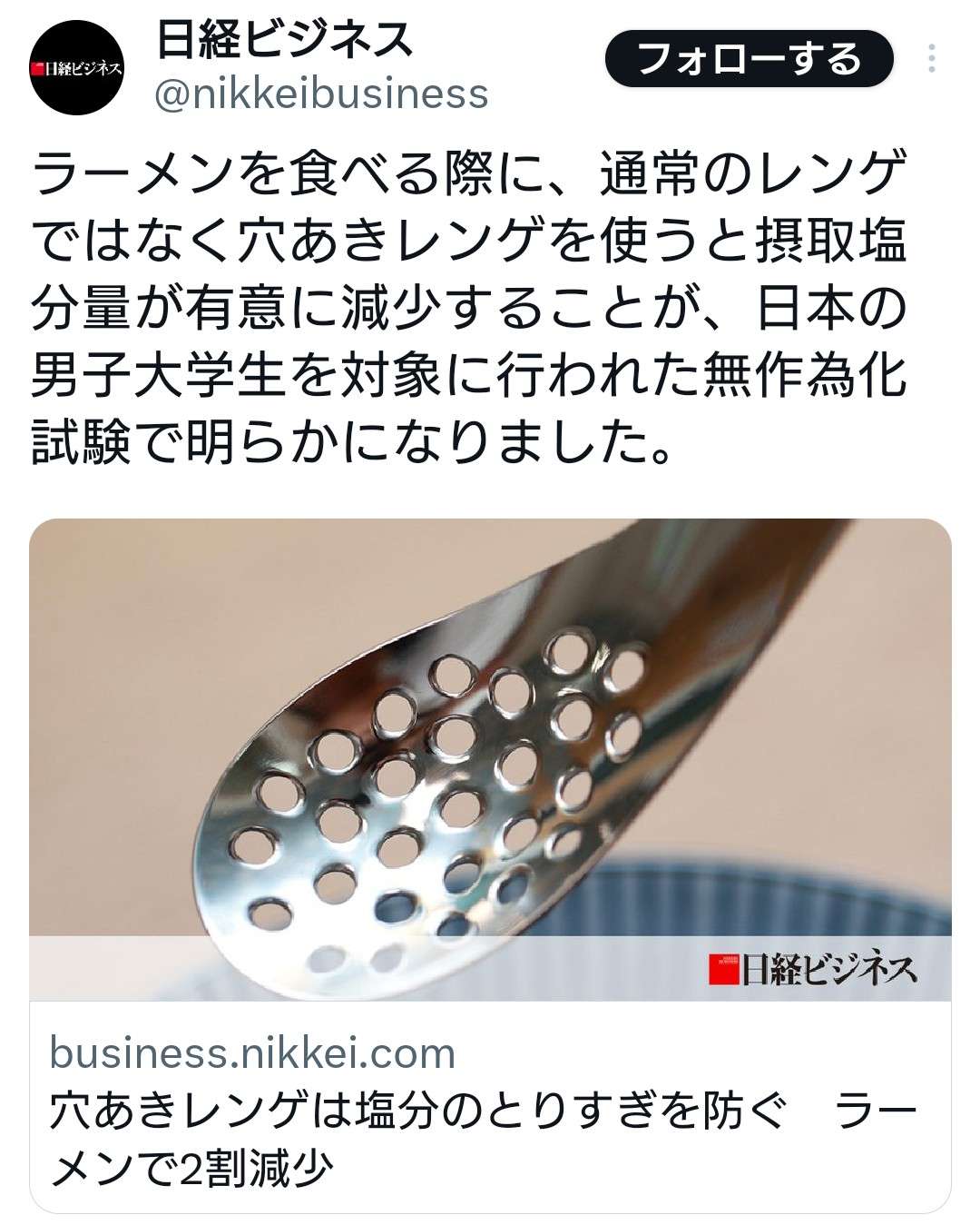 デブが穴あきレンゲ使ってスープ完飲しそう