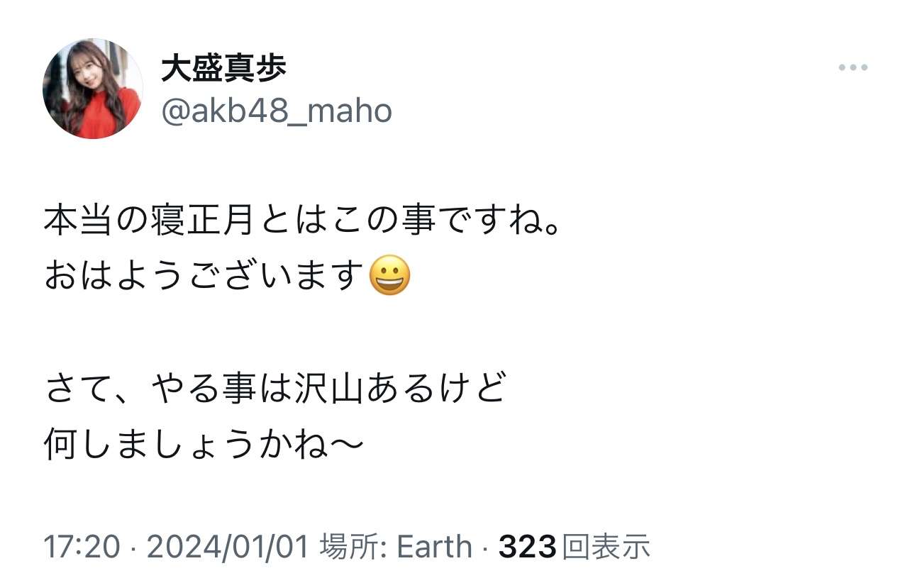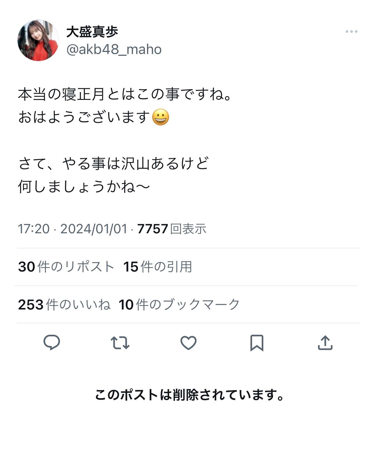 【悲報】AKB大盛真歩さん、新年早々やらかす