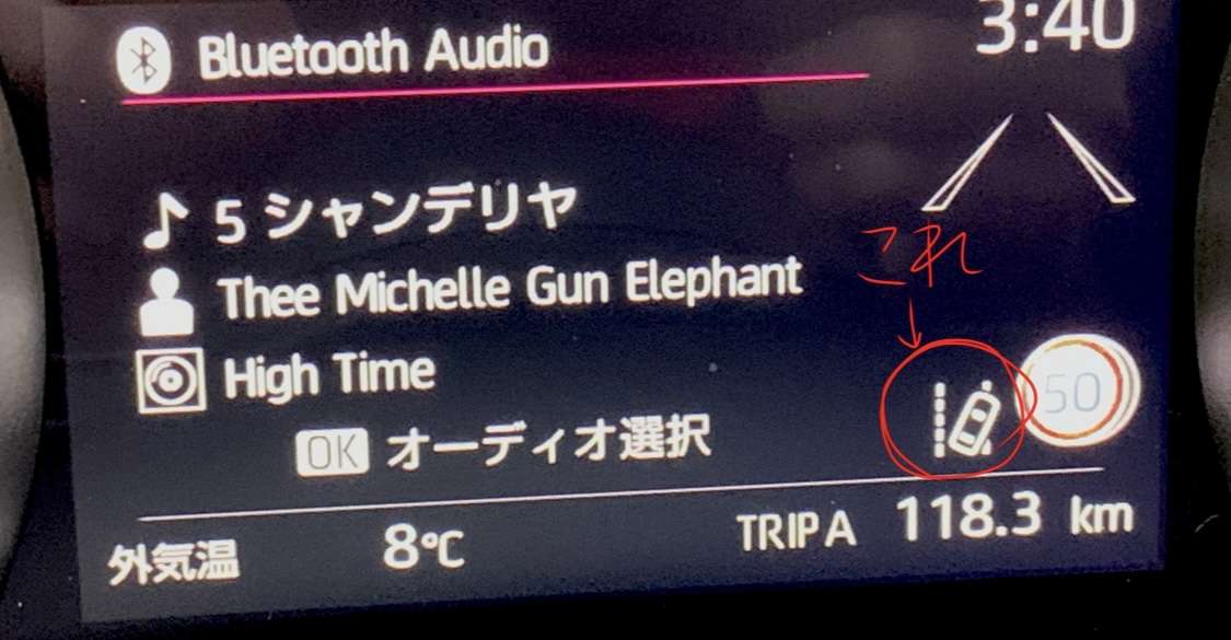 車線はみ出し警告”機能”が有効の表示