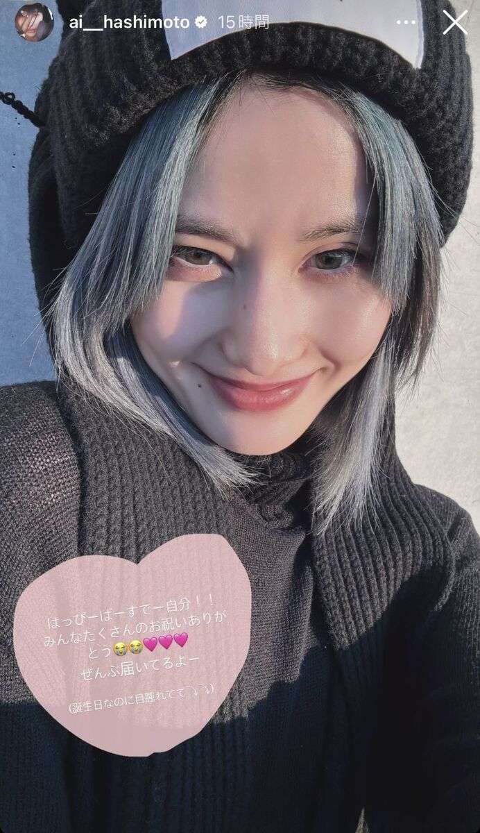 12日にインスタグラムのストーリーズで「はっぴばーすでー自分!!みんなたくさんのお祝いありがとう」と記し、鮮やかな青髪姿の自撮りショットを披露。「ぜんぶ届いてるよー(誕生日なのに目腫れてて)」とファンに向けてつづった。